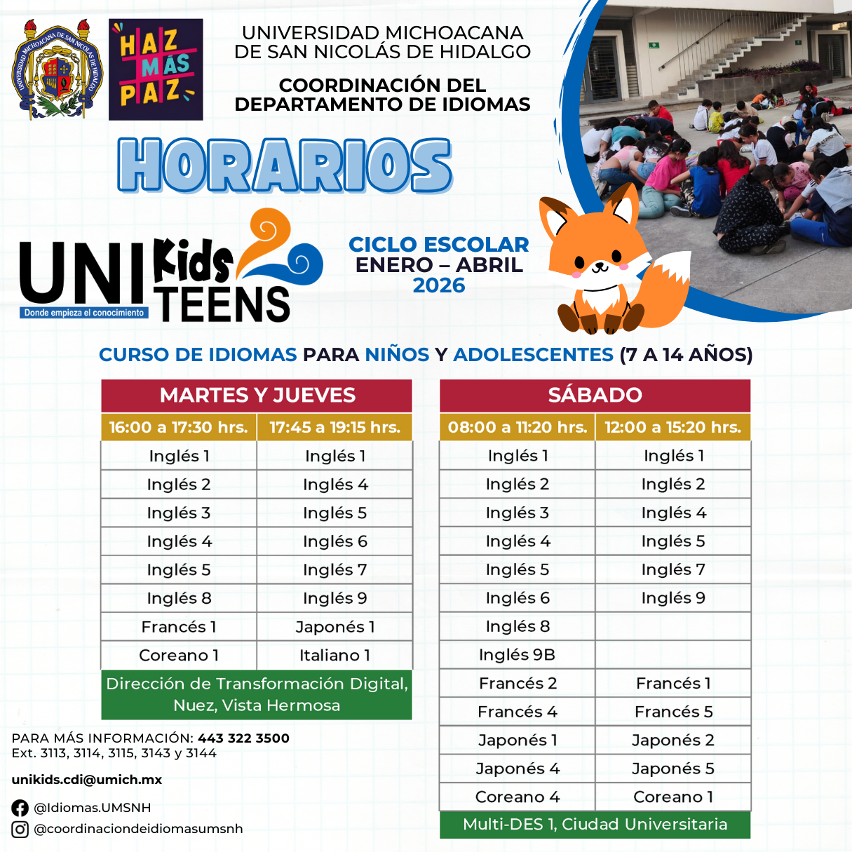 Calendario Unikids y Uniteens