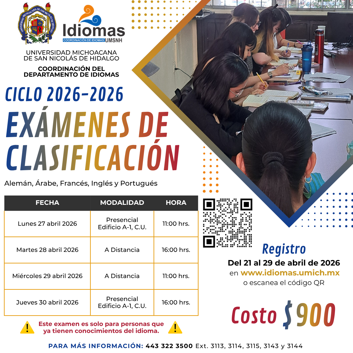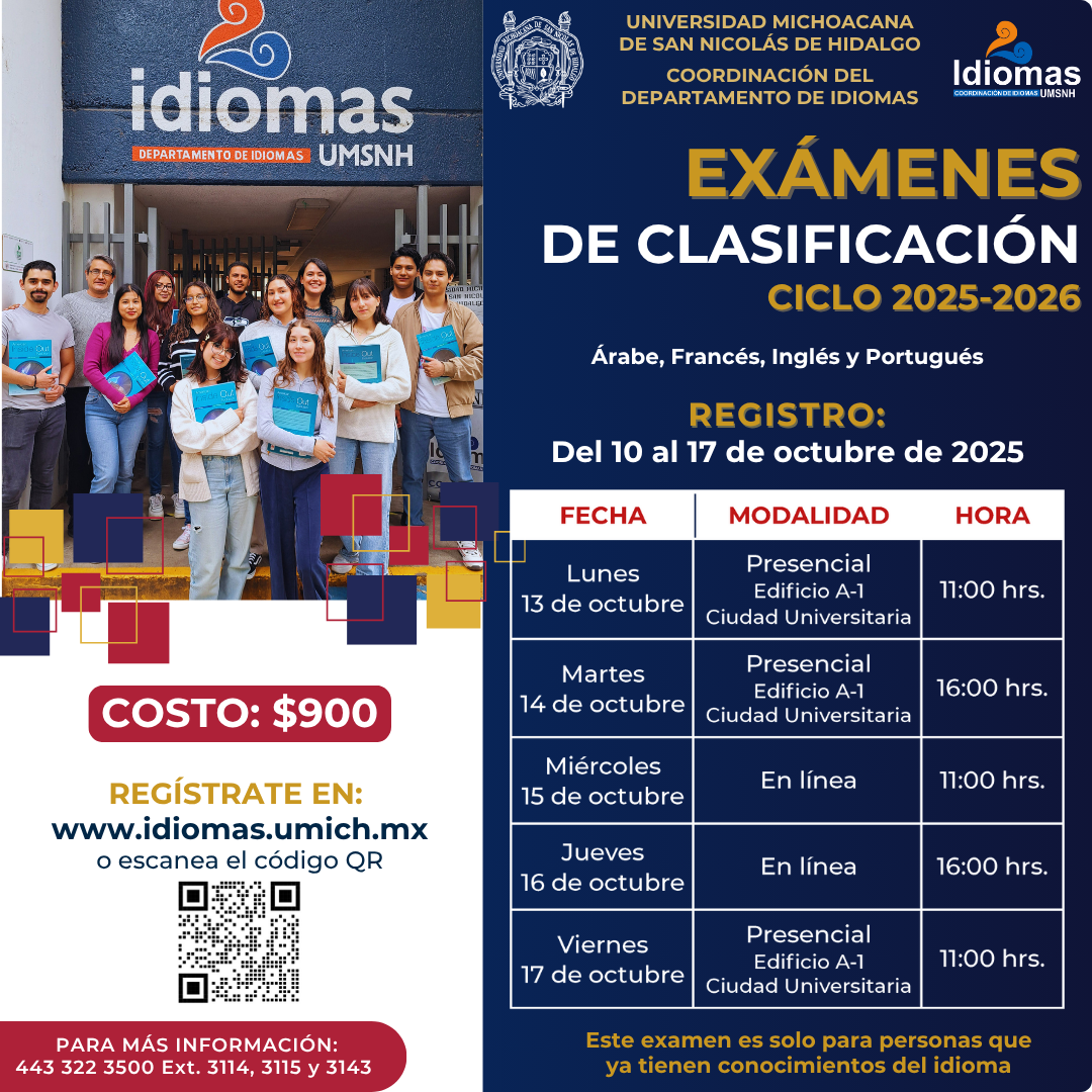 solicita examen de clasificación para ubicarte en el nivel correspondiente,