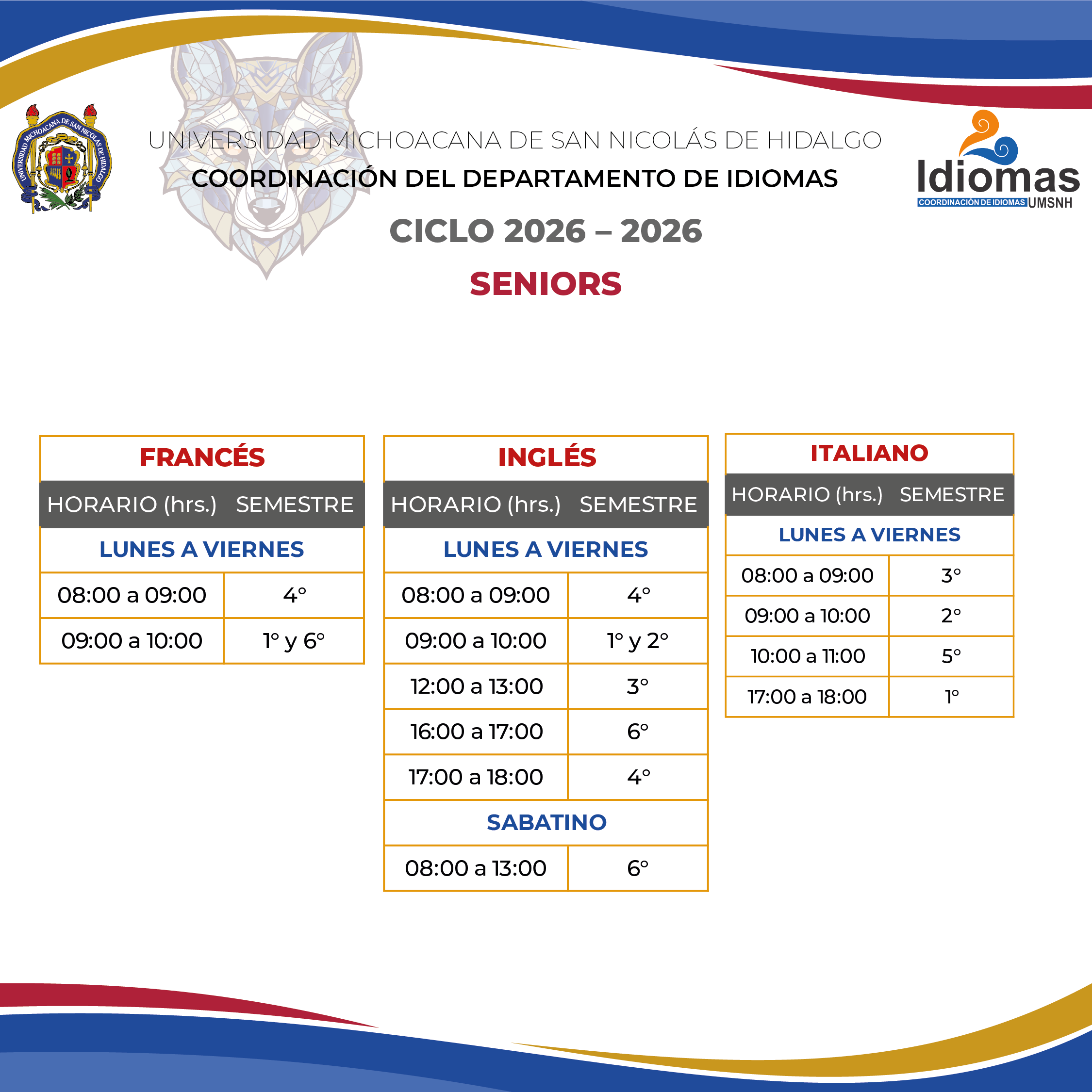 Es un programa especializado en la atención de adultos mayores con el deseo de involucrarse en el aprendizaje del Francés, Inglés e Italiano en una atmosfera propicia para sus características de enseñanza aprendizaje